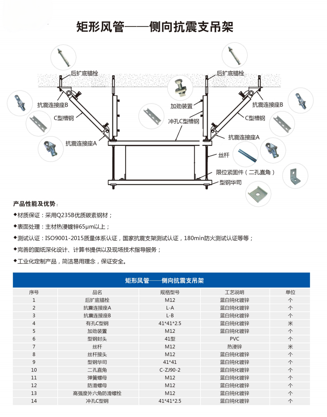 矩形风管-侧向抗震支吊架